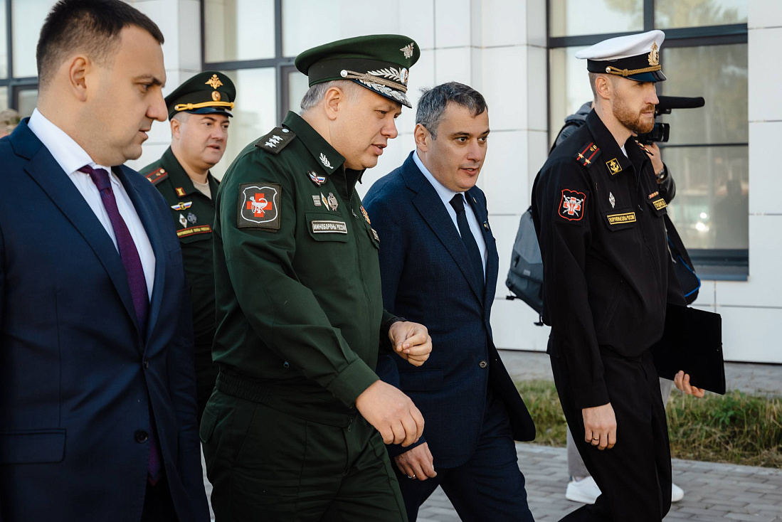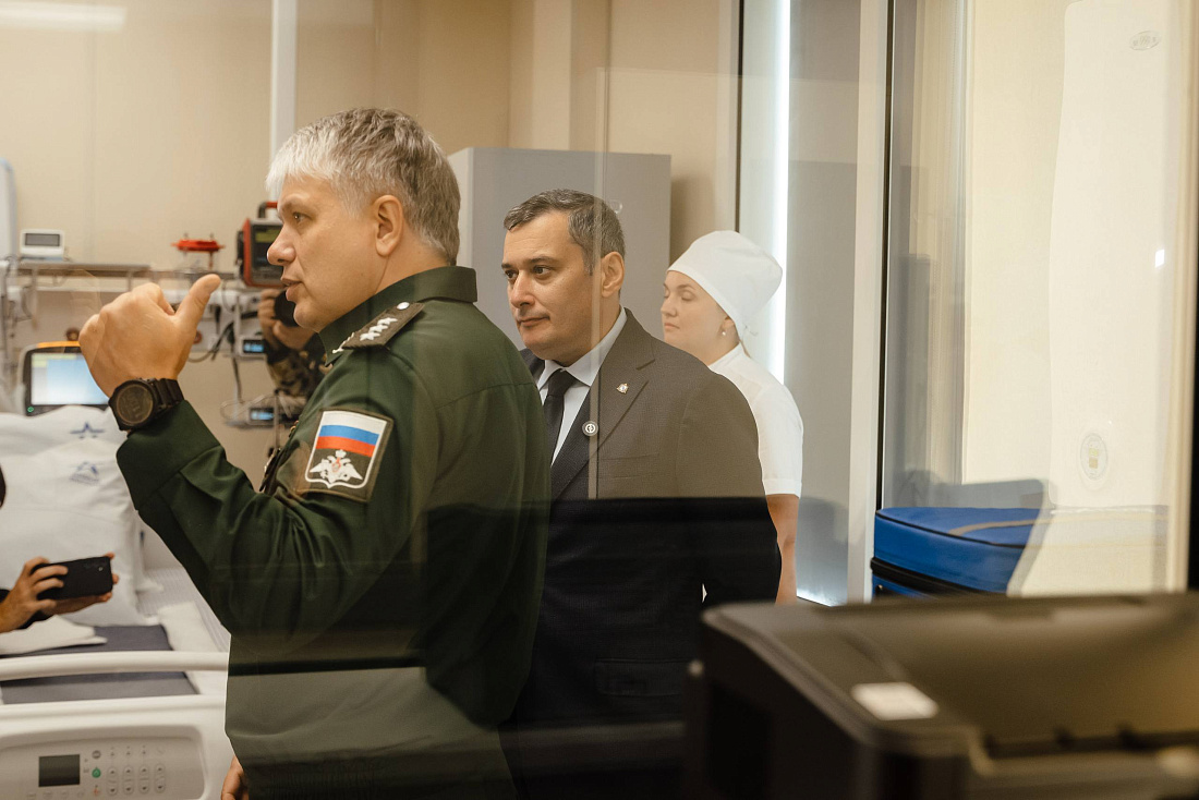 Врио губернатора Курской области Александр Хинштейн вместе с начальником Главного военно-медицинского управления Минобороны РФ Дмитрием Тришкиным осмотрели новый военный госпиталь, построенный в Курске по решению Президента РФ.