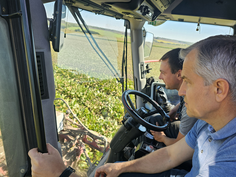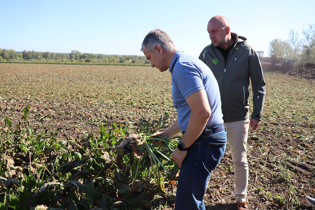 Врио первого заместителя губернатора – председателя Правительства Курской области Александр Чепик с рабочим визитом посетил Обоянский район и оценил ход уборки сахарной свеклы.