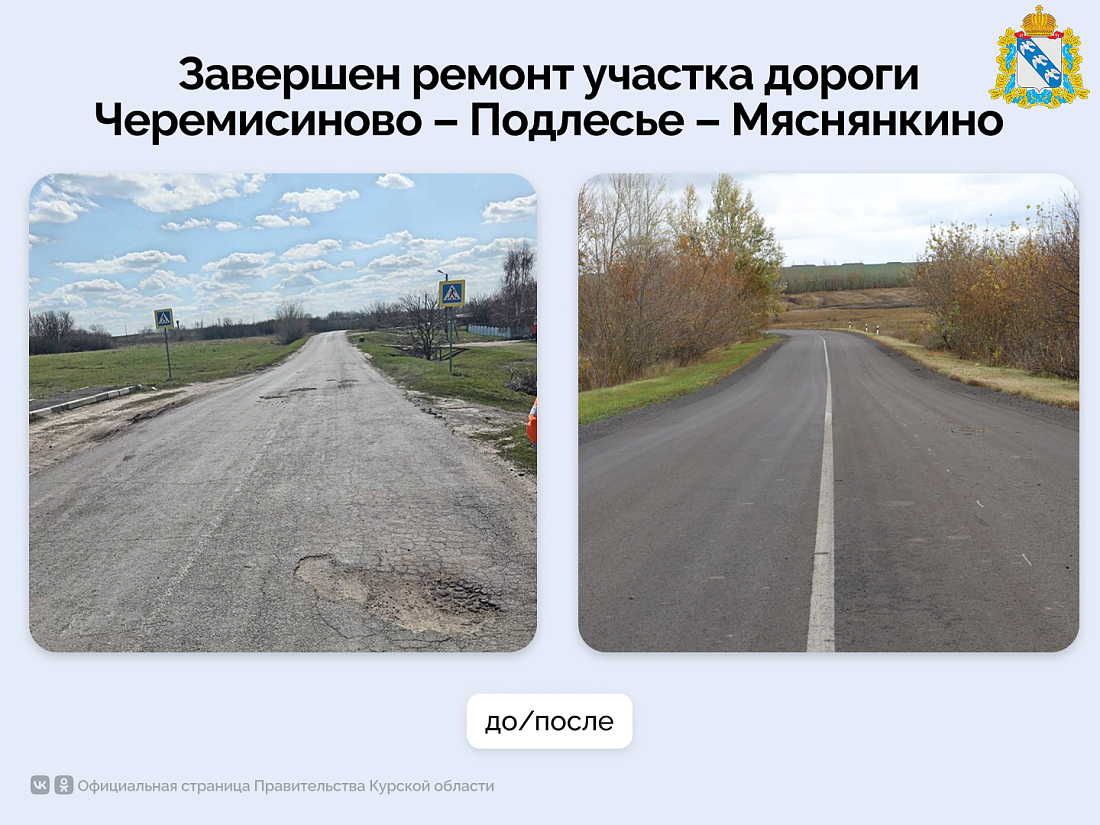 В Курской области завершили ремонт автодороги Черемисиново – Подлесье – Мяснянкино